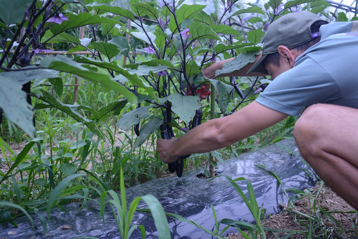 小ネギは思ったよりもサクッと抜け、ナスはハサミでちょきんちょきん落としていくのみ。