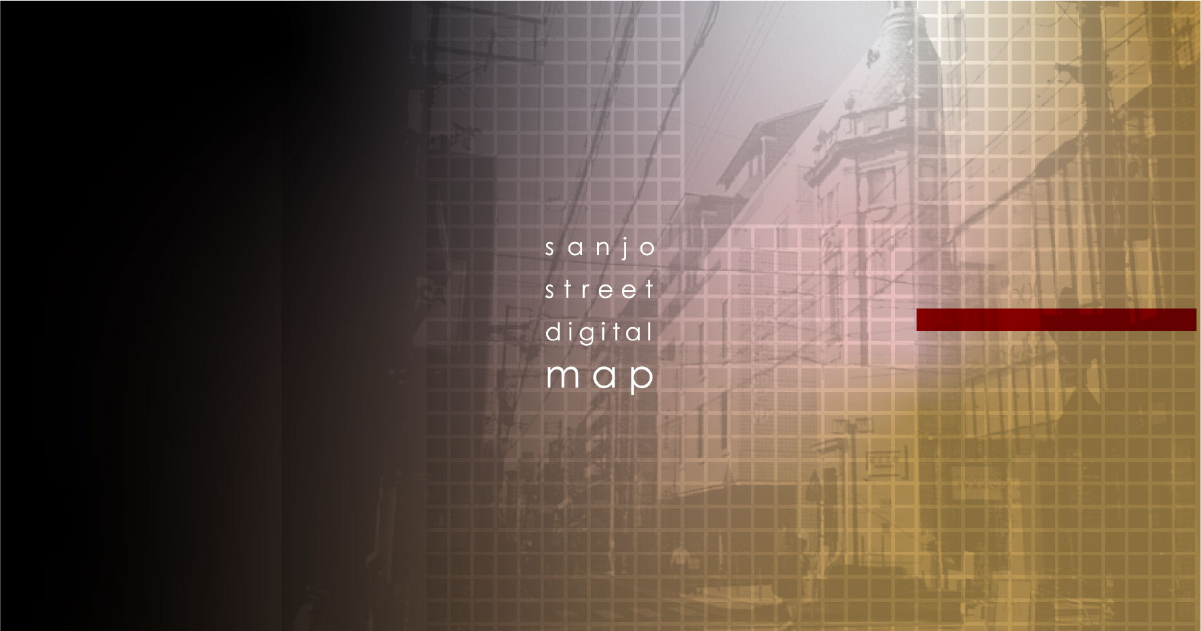 Sanjo street digital map of the history and present day of Sanjo street. 'Sanjo Dori, a dignified blend of nature and history. Explore the charms of this rich town.