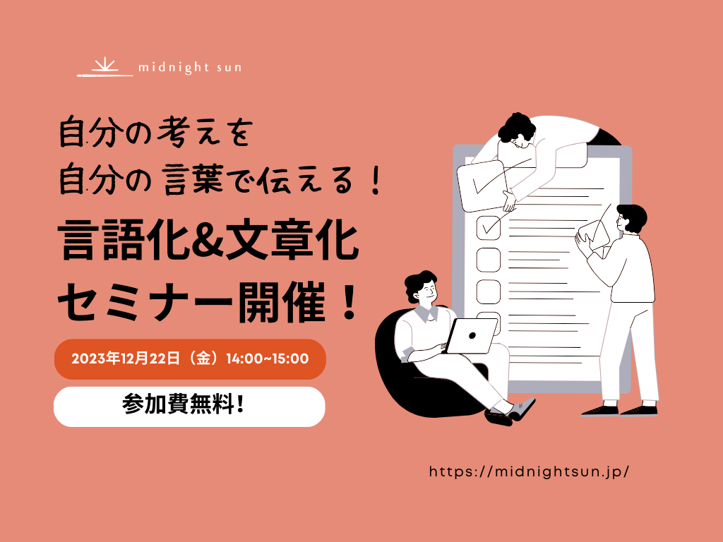 【セミナー情報】2023/12/22(金)、フリーランス・起業家(非ライター)など文章で発信したい方対象の「言語化&文章化オンラインセミナー」を開催します